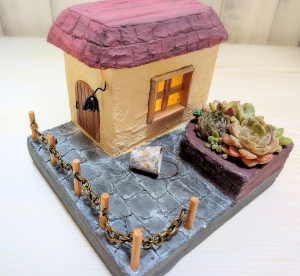 | 内容 | おうちを仕上げて小さなナチュラルガーデンを作りましょう。(ライト付き) *完成サイズ 約15×15cm |