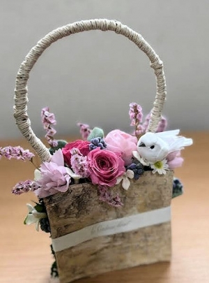 | 内容 | 白い小鳥が幸せを呼んでくれそうなアレンジメント♡ギフトにもgood! *完成サイズ 約8cm×18㎝ |