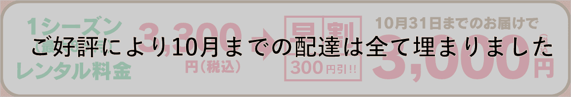 - 10月以降のお届けや途中で返却される場合でもレンタル料金は変わりません。